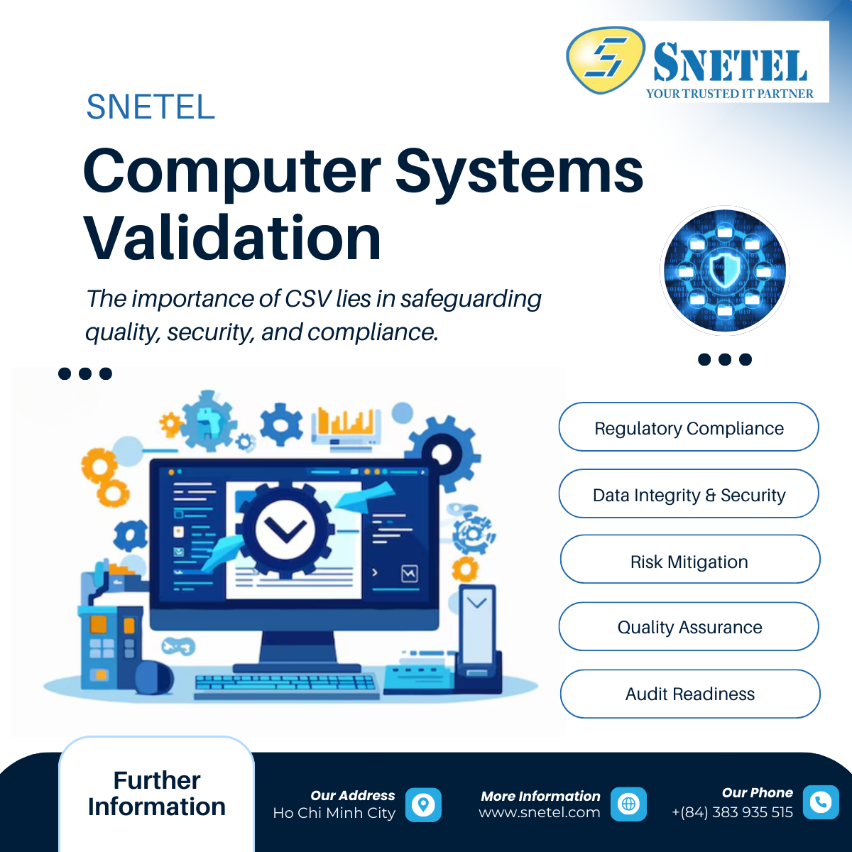 At SNETEL Technologies, we provide comprehensive CSV solutions tailored to regulated industries. Our expertise ensures compliance while reducing costs and minimizing operational risks.
